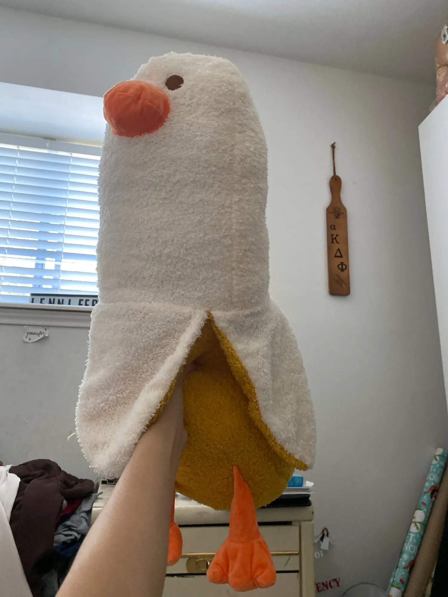 Love bananas and ducks? This duck has the face and legs as a duck but comes with the banana peel as its suit!